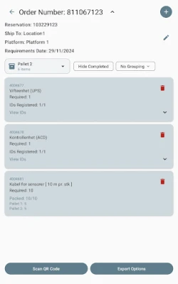 • Generate completed order reports and structured packing lists with equipment IDs and pallet assignments