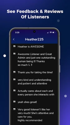 The app is free to download and all listeners are available to chat 100% free. After you download the app, you can start a conversation in less than 60 seconds.