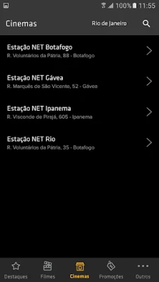 Considerado pelo público como um dos mais charmosos do Rio de Janeiro, o Circuito Estação NET de Cinema possui 5 complexos – Estação NET Botafogo (3 salas), Estação NET Rio (5 salas), Estação NET Ipanema (2 salas), Estação NET BarraPoint (2 salas) e Estação NET Gávea (5 salas), com cafés, livrarias, sempre com filmes inéditos, clássicos, mostras e sessões especiais em sua programação.