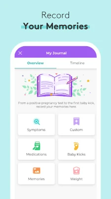 * Keep track of your bump, symptoms, pregnancy weight, kick counts, birth plan and memories with our My Journal tool