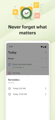 With a simple tap, add your daily tasks and set reminders, enjoy multiple views like calendar, list and board, filter activity by work and/or personal life, share notes, collaborate on projects, and achieve peace of mind.