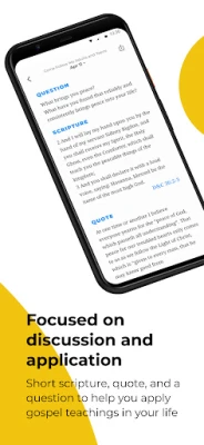 Every devotional focuses on a question that will help you ponder the scriptures more deeply and discuss how they can apply in your daily life. This helps you go beyond just reading the scriptures, so that the scriptures truly come alive in your life.